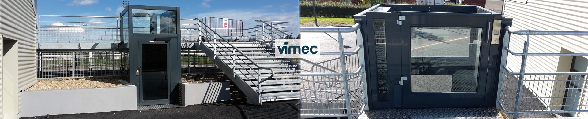 Servoscala dal design innovativo VIMEC mod. V6, ecologico e connesso, con piattaforma per trasporto di persone in carrozzina, adatto per percorsi interni ed esterni rettilinei, con pendenza da 0° a 50° e portata fino a 300 kg.