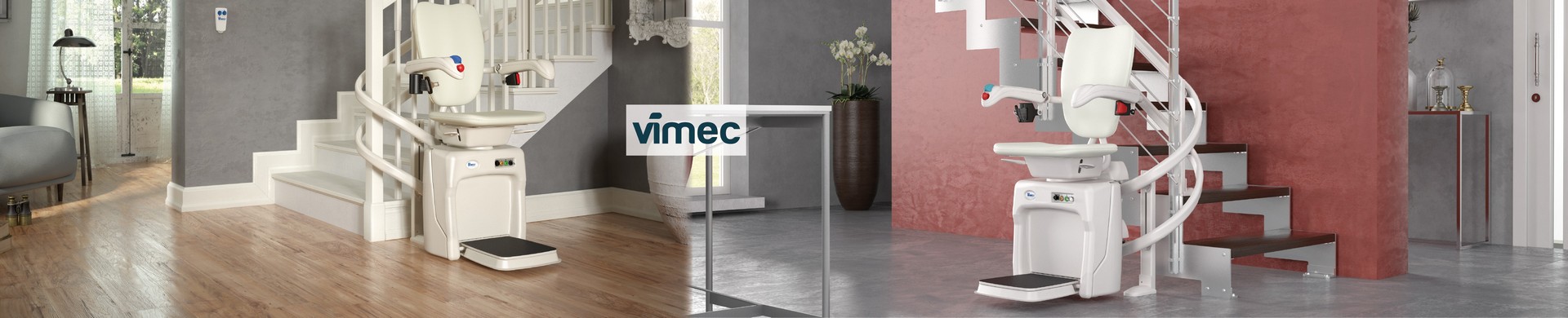 Servoscala dal design innovativo VIMEC mod. V6s, ecologico e connesso, con piattaforma per trasporto di persone in carrozzina, adatto per percorsi interni ed esterni curvilinei, con pendenza da 0° a 50° e portata fino a 300 kg.