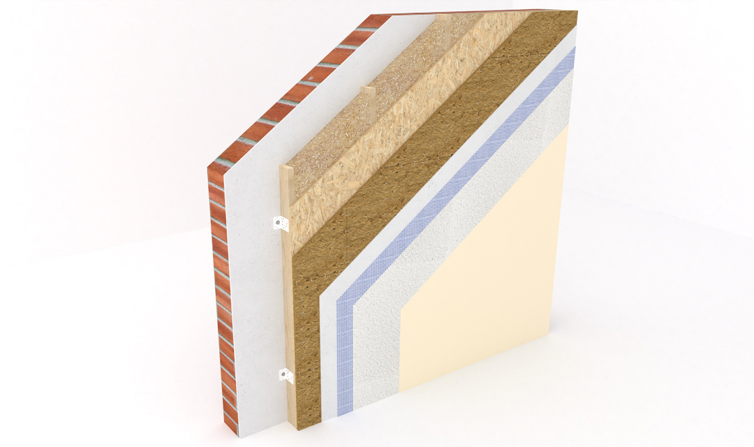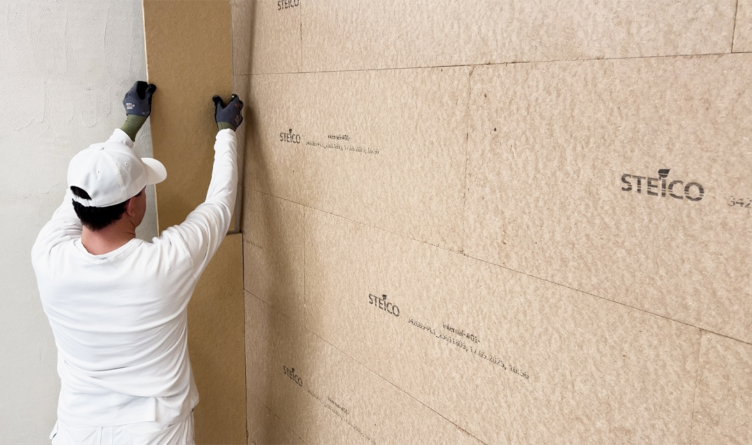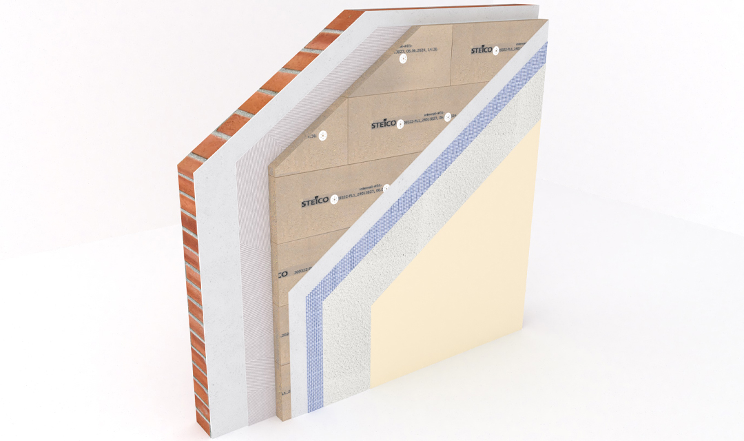 Il valore lambda (λ) è il parametro chiave per la prestazione isolante invernale di un materiale. Più basso è il valore, più sottile può essere lo strato isolante. STEICOinternal ha un valore λD (conduttività termica) di 0,038. Il valore U è la misura della trasmissione del calore attraverso l'intera struttura della parete. Più basso è il valore, minore è la dispersione di energia termica. Le pareti in mattoni non ristrutturate hanno spesso un valore U di circa 1,12 W/(m²K). Con soli 6 cm di isolamento interno STEICOinternal, questo valore U può essere migliorato fino a 0,41. L'efficienza energetica della parete migliora del 63%!