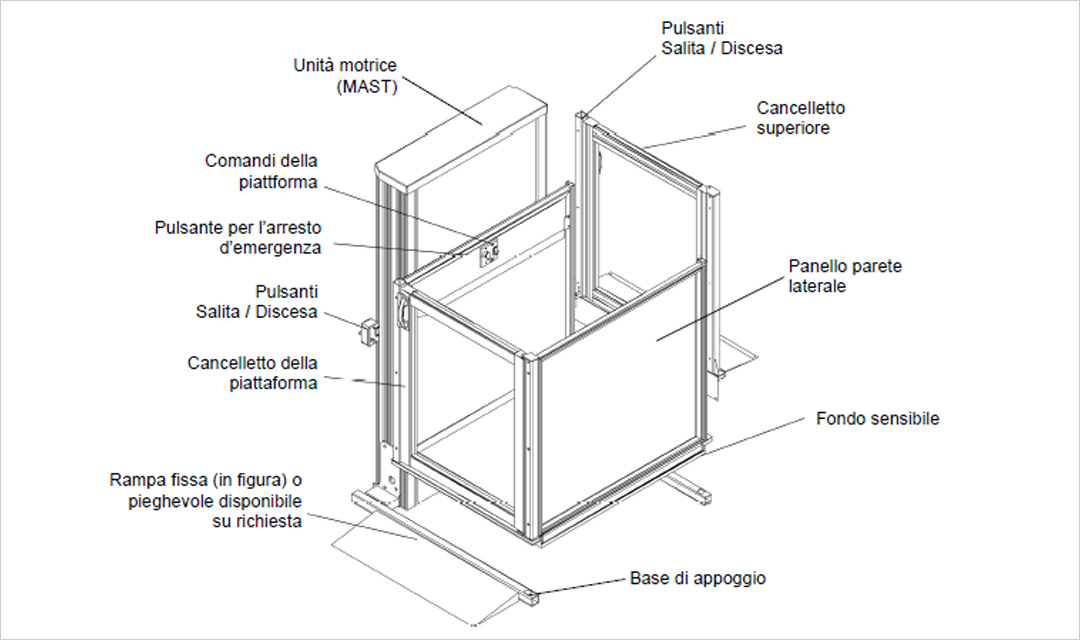 Per garantire un utilizzo semplice ed intuitivo, Opal è dotato di pulsanti per la gestione dei movimenti della piattaforma sia a bordo che ai piani.