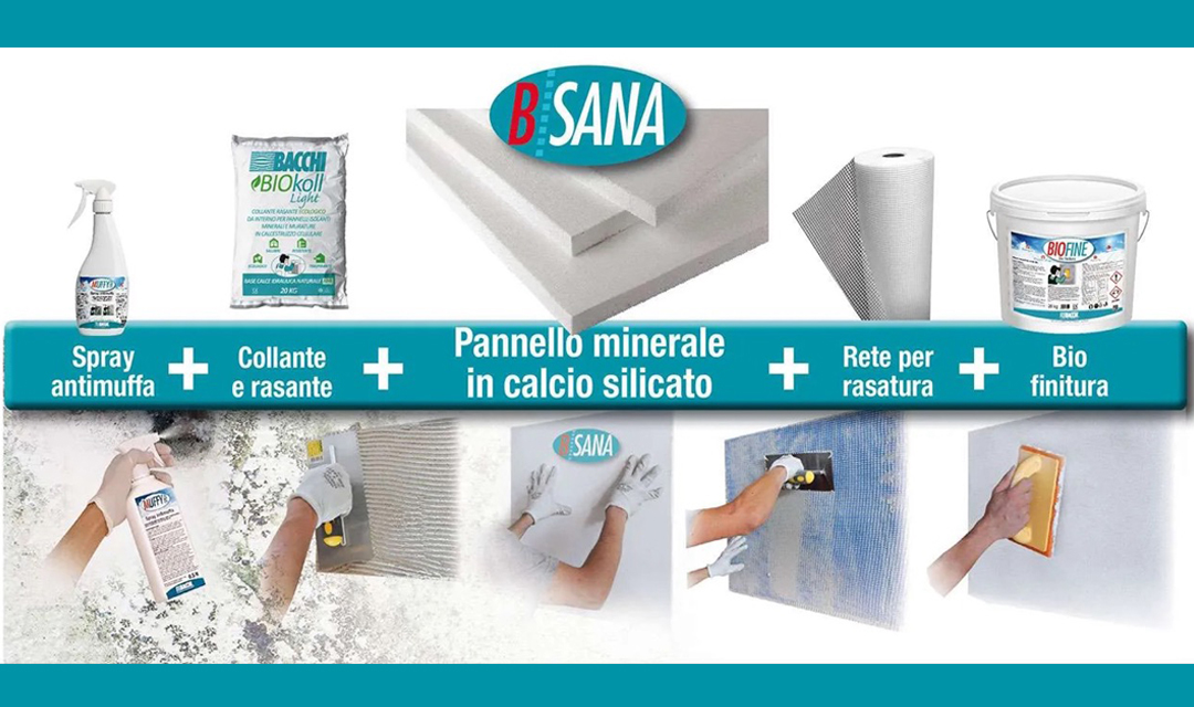 Oltre ai pannelli B/SANA, il sistema è composto da materiali compatibili che ne preservano le caratteristiche e l’efficacia. L’utilizzo del sistema completo garantisce un lavoro semplificato ed un risultato di qualità.
